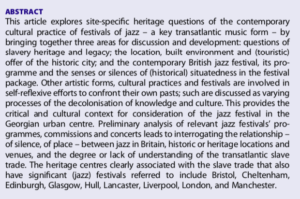 Includes my essay on UK jazz festivals in sites of transatlantic slave trade.